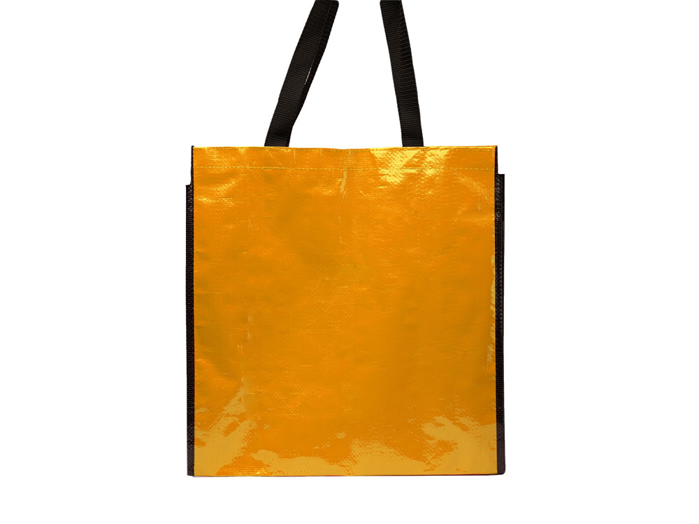 Сумка многоразового использования с глянцевой ламинированной отделкой. Прочный материал с ручками из усиленного нейлона и соответствующей черной окантовкой.